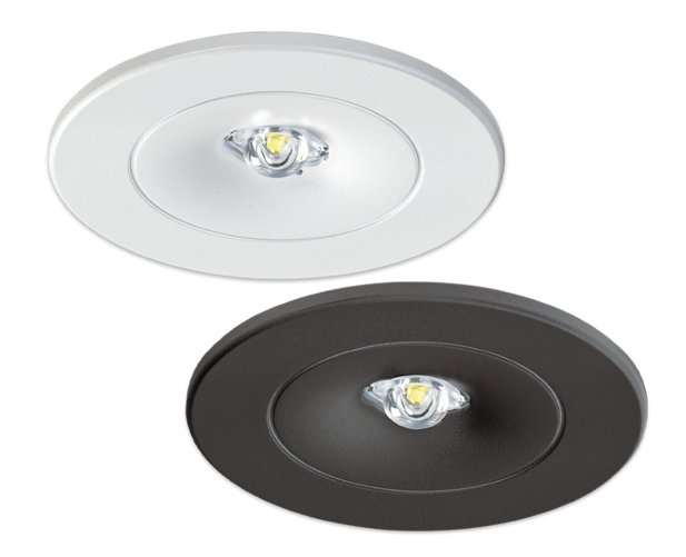 Annähernd deckenbündiger Leuchtenkörper aus Aluminium-Druckguss, pulverbeschichtet in weiss oder schwarz in runder Ausführung für Deckeneinbau.