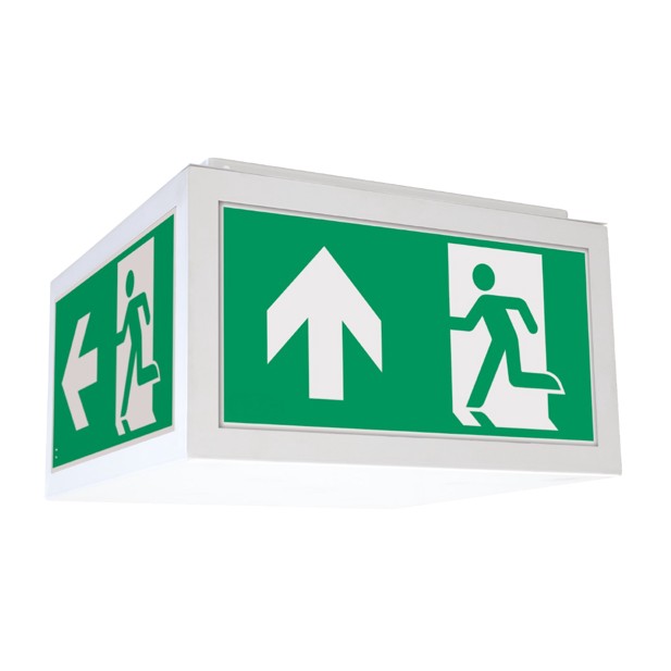 Widerstandsfähige Rettungszeichenleuchte mit allseitigem Lichtaustritt