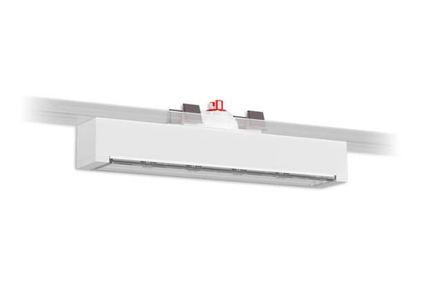 Schlanke und schraubenlose Sicherheitsleuchte für die Montage in dafür freigegebene Lichtband-Geräteträger mit Optiken zur Fluchtwegausleuchtung in Längsrichtung. Über den eingebauten Rastmechanismus kann die Leuchte in 30°- bzw. 45°-Schritten um die eigene Achse gedreht werden. Gegen Aufpreis kann die Leuchte werkseitig fertig montiert in durch uns zugekaufte und bearbeitete Lichtband-Geräteträger bezogen werden (Details siehe Datenblatt).