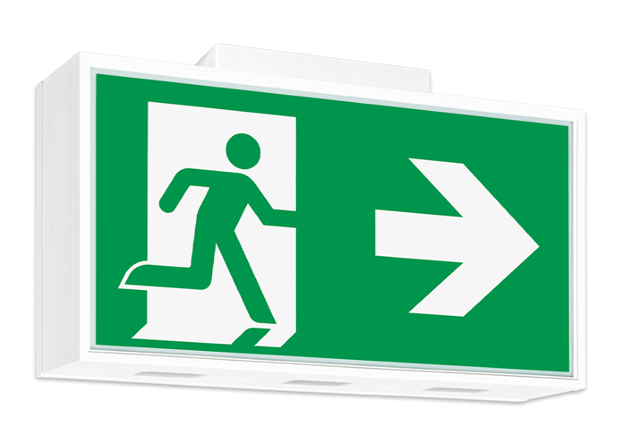 Rettungszeichenleuchte nach DIN EN 60598-1/2-22 und DIN EN 1838.