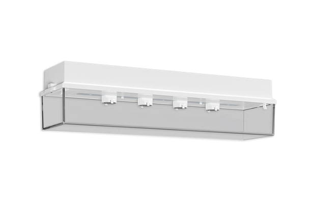 Polycarbonat-Gehäuse mit klarer Leuchtenhaube mit Tiefstrahloptiken für hohe Deckenhöhen.