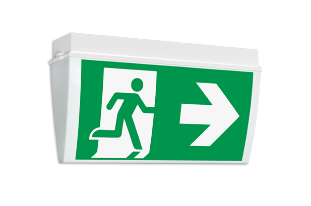 Rettungszeichenleuchte nach DIN EN 60598-1/2-22 und DIN EN 1838.