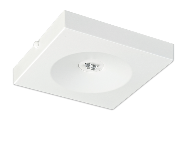 Ausführung für Deckenaufbaumontage mit gegossener Acryloptik zur Fluchtwegausleuchtung.