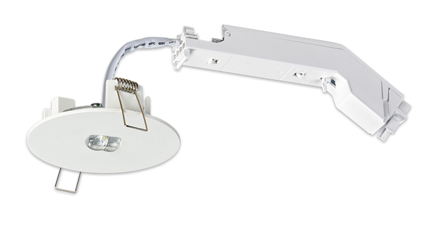 - Annähernd deckenbündige Einbauleuchte mit rundem Aluminiumkopf in weiß