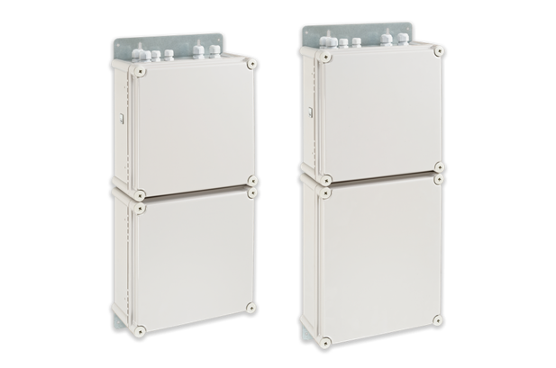 2 separate Gehäuse (je eins für Elektronik & Batterie)