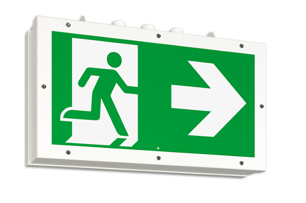 Robuste Rettungszeichenleuchte aus pulverbeschichtetem Stahlblech