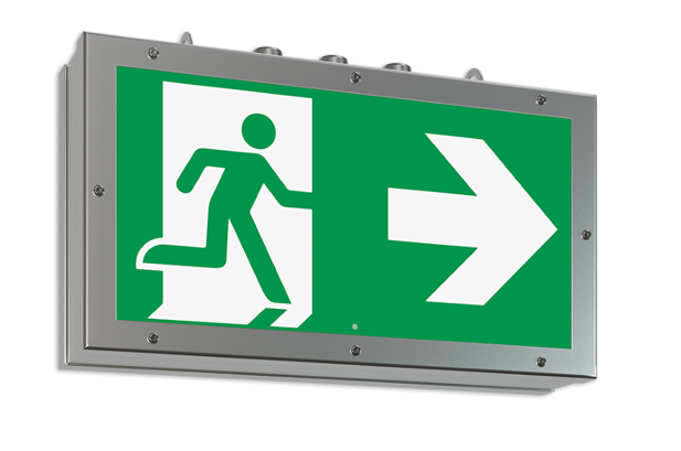 Robuste Rettungszeichenleuchte aus gebürstetem Edelstahl (V2A)