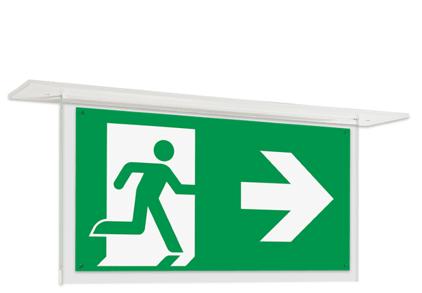 Lieferbar als Deckeneinbaumontage mit 10 mm dicker Lichtlenkscheibe und austauschbaren Piktogrammen. Im Leuchtenpreis ist pro Leuchte ein Piktogramm-Vorsatzfolien-Set - Pfeil links/rechts/unten/oben/blind (Erkennungsweite 30 m) enthalten.