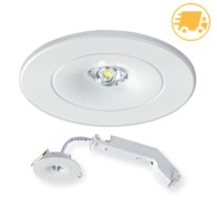 Beschreibung 3W LED, 3h, Deckeneinbaumontage, IP40, 50lm(Netz)/240lm(Not), 5VA, Aluminium-Druckguss/Polycarbonat