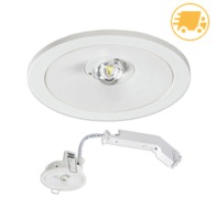 Beschreibung 3W LED, 1h, Deckeneinbaumontage, IP40, 50lm(Netz)/240lm(Not), 5VA, Aluminium-Druckguss/Polycarbonat